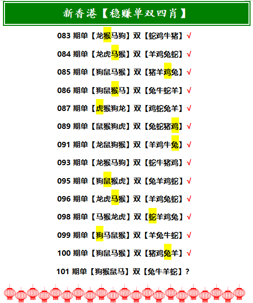 000096期:阴肖【蛇鼠马龙】阳肖【鸡牛羊猴】