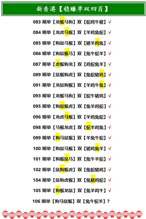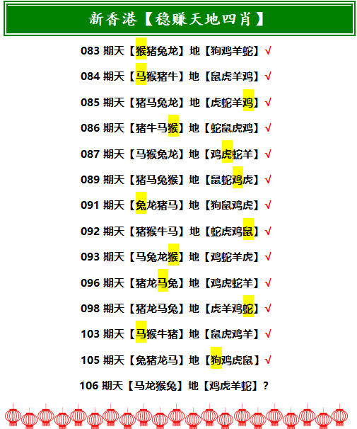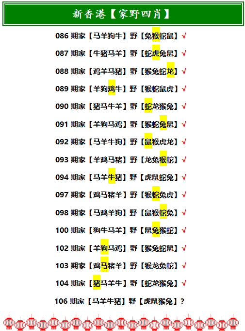 000106期:阴肖【蛇鼠马龙】阳肖【鸡牛羊猴】