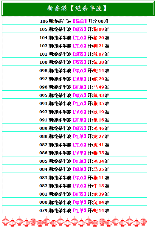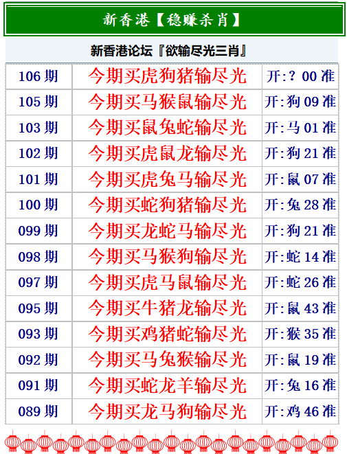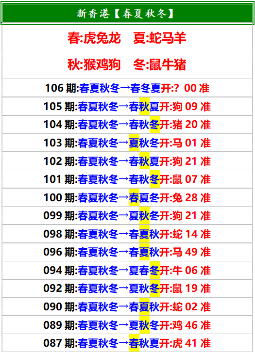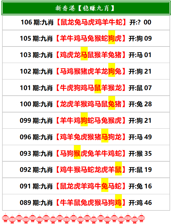 000106期:吉肖【龙蛇羊马】凶肖【虎牛猪鼠】